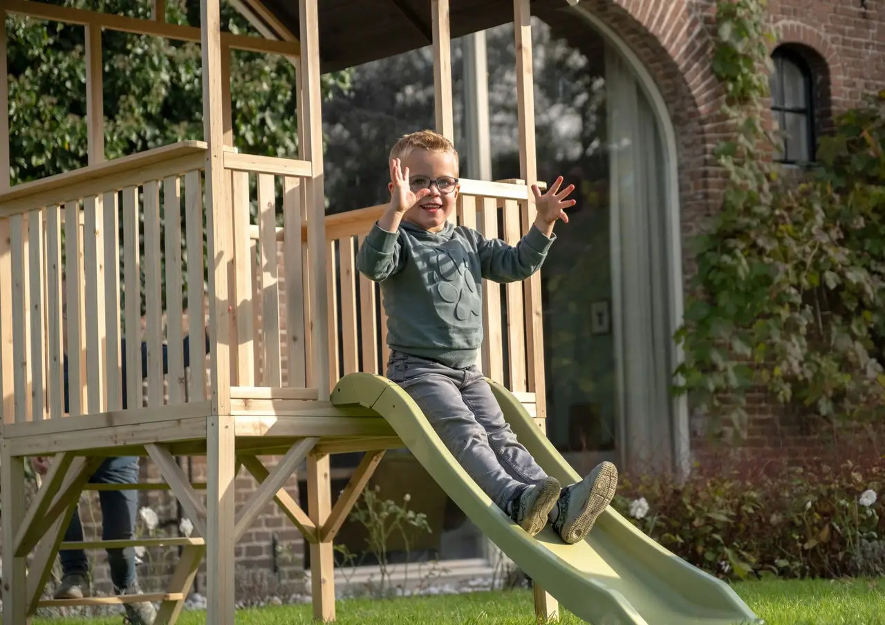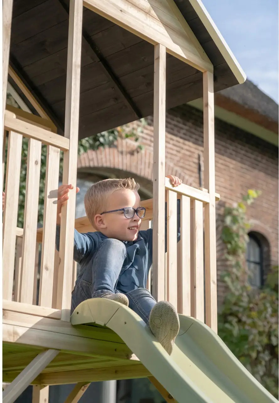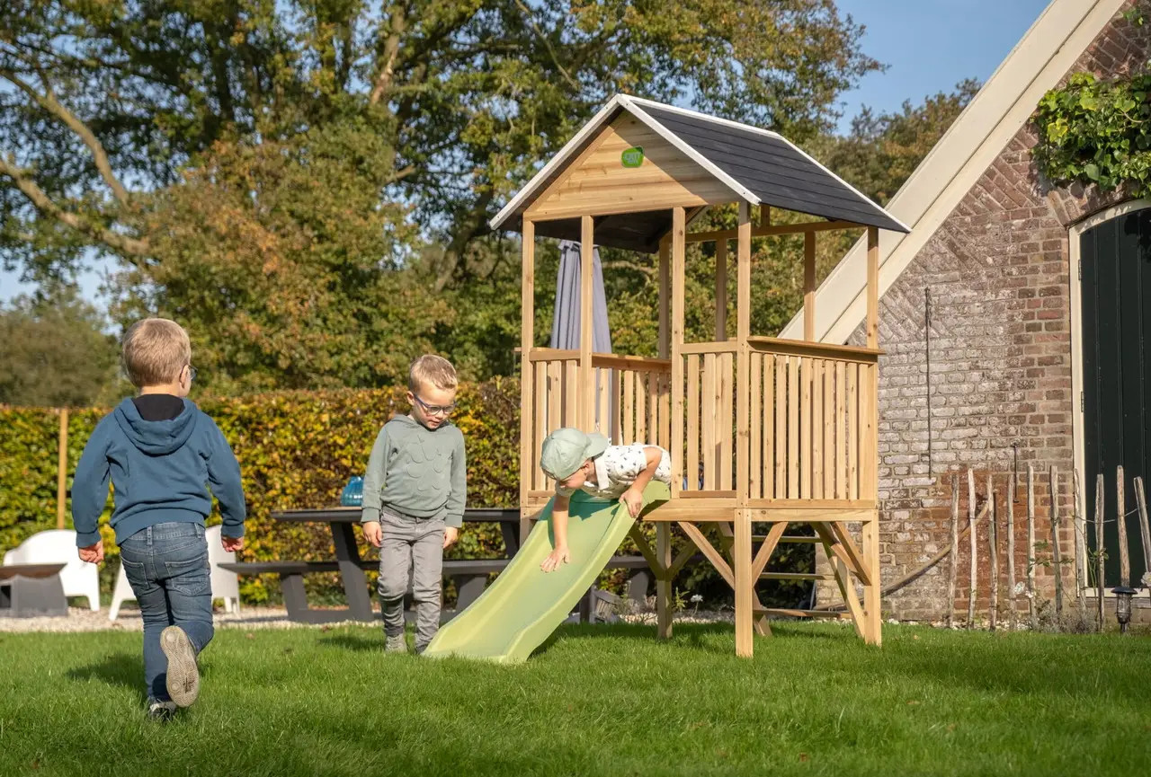 Дитячий ігровий будиночок EXIT Panorama 300 з гіркою, з деревини кипариса