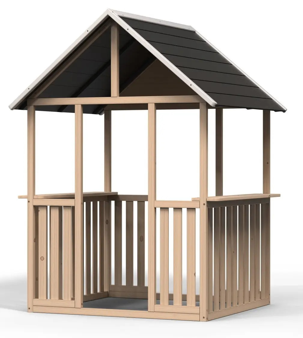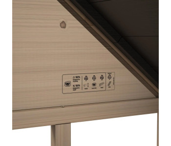 - Цей садовий ігровий будиночок виготовлений із високоякісної деревини кипариса із сертифікацією FSC® – це означає, що вона отримана відповідально й безпечно для природи. Дерево стійке до дощу, сонця та снігу, не піддається гниттю й майже не потребує догляду.