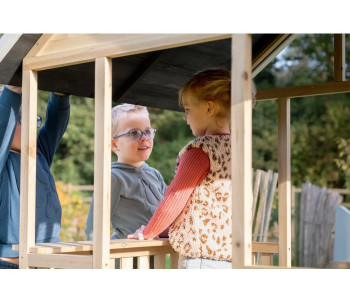 Подаруйте своїм дітям справжній куточок пригод із дерев'яним ігровим будиночком EXIT Panorama 100! Він повністю виправдовує свою назву – з нього відкривається чудовий вид на сад, а просторе планування дозволяє грати одразу кільком дітям. Відкрита конструкція створює атмосферу свободи, де можна придумувати нові ігри, легко заходити та виходити через два входи й почуватися комфортно.
