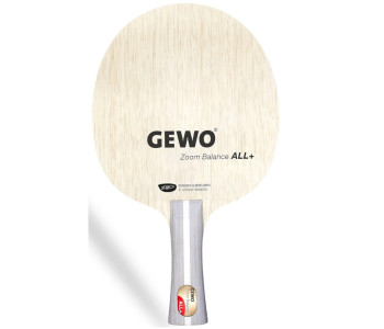 Оскільки активні гравці-універсали зазвичай хочуть грати з великою різноманітністю, їм потрібна основа для ракетки, яка пропонує найкращу можливу підтримку як для атакувальних ударів, так і для пасивної гри. Gewo Zoom Balance All+ вагою приблизно 85 г ідеально відповідає цим вимогам. GEWO Zoom Balance ALL поєднує в собі три високоякісні дерев'яні шпони: Limba, Ayous та Koto. У поєднанні з внутрішніми шарами деревини Koto та центральним шпоном Ayous, воно пропонує чудове поєднання балансу та відчуття («гумовий імпульс»). Дерев'яні шари забезпечують необхідну оптимальну зону удару, відповідну міцність на вигин та відповідний зворотний зв'язок по потужності, що є важливим у сучасному настільному тенісі. Значення швидкості та контролю, ідеально підібрані для універсальної основи, дозволяють швидко перемикатися з пасивного на активне і навпаки під час розіграшу. Унікальний зворотний зв'язок по м'ячу («Power Feedback») полегшує вам контроль над грою. Він дозволяє виконувати пасивні удари, такі як блоки, поштовхи та вдало спрямовані повернення м'яча, які чинять прямий тиск на вашого суперника. Ретельно підібрані дерев'яні шари забезпечують необхідне відчуття, що робить його універсальною основою вище середнього. На додаток до відмінних значень контролю, основа також пропонує достатній резерв швидкості для вашої власної атакуючої гри.