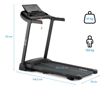 - Розміри бігової доріжки в розкладеному стані: 149,2 x 76 x 112см