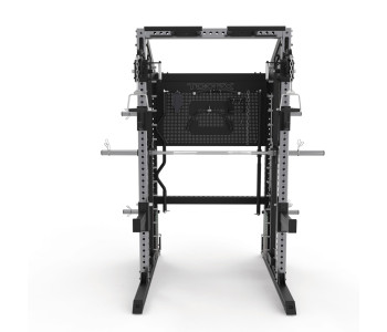 Аксесуари в комплекті: 2 J-подібні тримачі, 2 страхувальні упори, турнік з мультихватом, паралельні бруси, тримач для грифа, 6 тримачів для дисків діаметром 50 мм, 8 пружинних замків діаметром 49 мм, ремінь, канат, адаптер landmine, вигнутий гриф, прямий гриф, короткий гриф, шкіряна манжета, V-ручка, Y-ручки, гачки, ланцюги, антиковзна платформа.