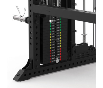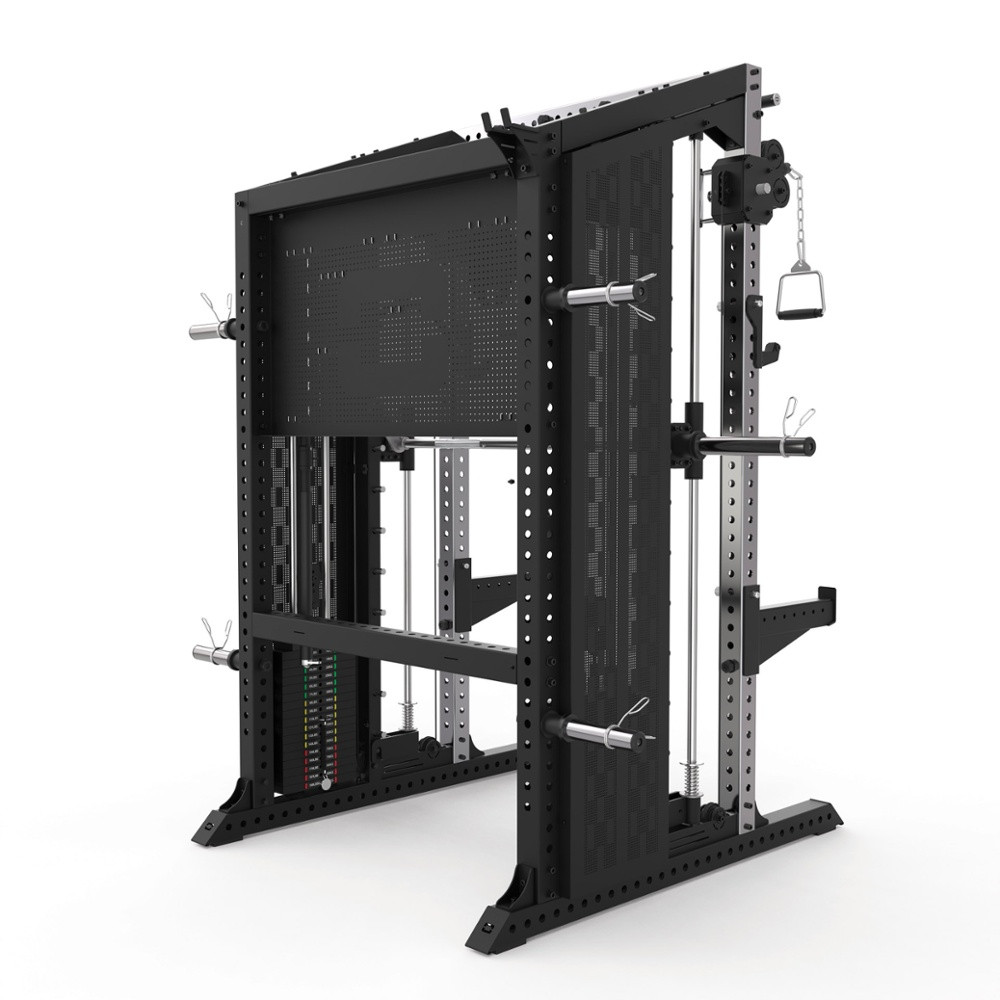 - Професійний формат 3-в-1: поєднує машину Сміта, кросовер і силову раму — повноцінна функціональна станція.
