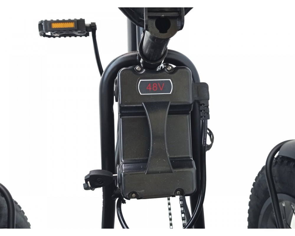 Представляємо триколісний електровелосипед-фетбайк, створений для тих, хто цінує поєднання стійкості, високої прохідності та комфорту. Ця модель з потужним двигуном 750W та міцною сталевою рамою ідеально підходить для перевезення вантажів, тривалих подорожей та впевнених поїздок по будь-якій місцевості.