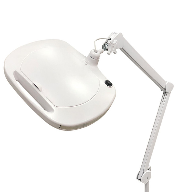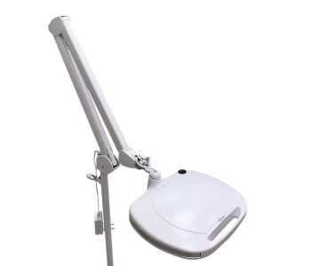 Металева конструкція довжиною 86 см та спеціальні пружини-стабілізатори забезпечують легке переміщення світильника в радіусі штатива та надійну фіксацію голови лампи-лупи в будь-якому положенні.