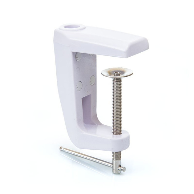 Лампа кріпиться до столу або візка косметолога за допомогою надійної металевої струбцини, що забезпечує стабільність.