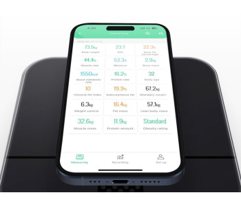 Особливості: LED дисплей, Bluetooth, вимірювання вмісту жиру, води, м'язів (у відсотках), синхронізація з додатком AiLink, FitBit, Apple Health, Google Fit, автоматичне увімкнення/вимкнення.