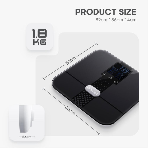 Розумні ваги O'Yeet BS-OY02 – це сучасний та функціональний пристрій, розроблений для всебічного моніторингу складу вашого тіла прямо у вас вдома. Поєднуючи в собі стильний дизайн та передові технології, ці електронні ваги допоможуть вам ефективно контролювати вагу та підтримувати здоровий спосіб життя.