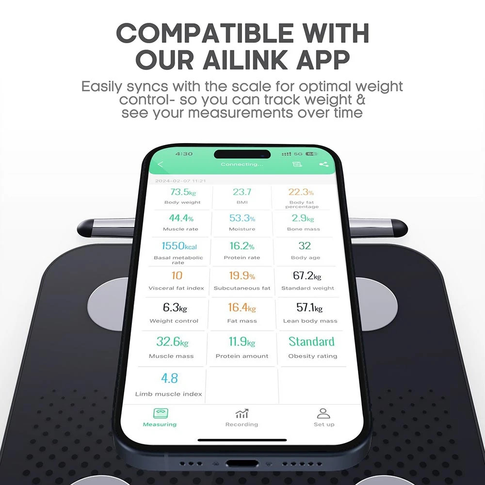 Інтелектуальні функції: O'Yeet BS-OY03 Smart Scale підтримують функції пам'яті, що дозволяє відстежувати зміни ваги з часом. Функція автоматичного вимкнення значно економить енергію, подовжуючи термін служби батарей (4 x 1.5V AAA). Можливість інтеграції з розумним будинком забезпечує додаткову зручність та легкість використання.