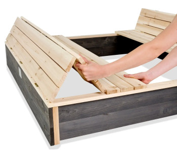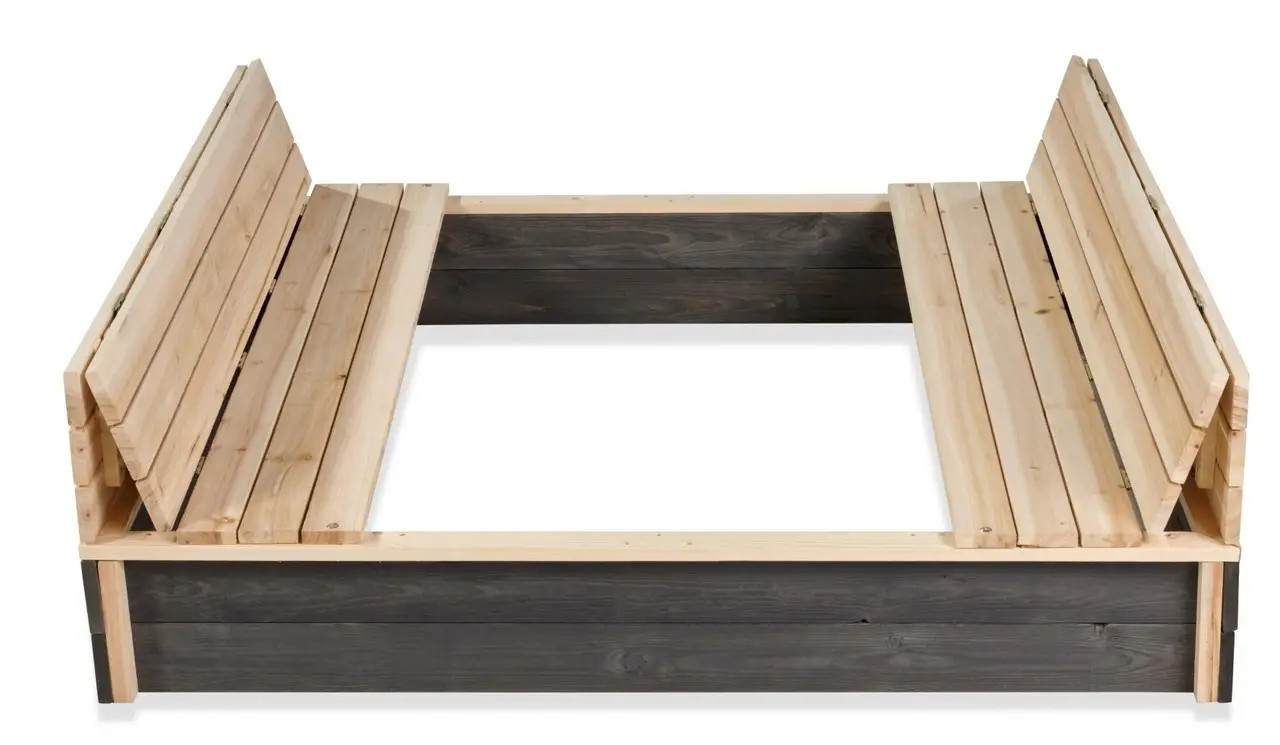 Особлива гордість цієї пісочниці — її продумана конструкція. Вона оснащена двома міцними лавками зі спинками, де діти можуть комфортно сидіти під час гри, не бруднячись у піску. 💖 Але головна перевага — це її практичність: після гри лавки легко трансформуються в надійну кришку, яка щільно закриває пісочницю. Це захищає пісок від забруднень, дощу, вітру та тварин, зберігаючи його чистим і готовим до нових ігор у будь-який момент.