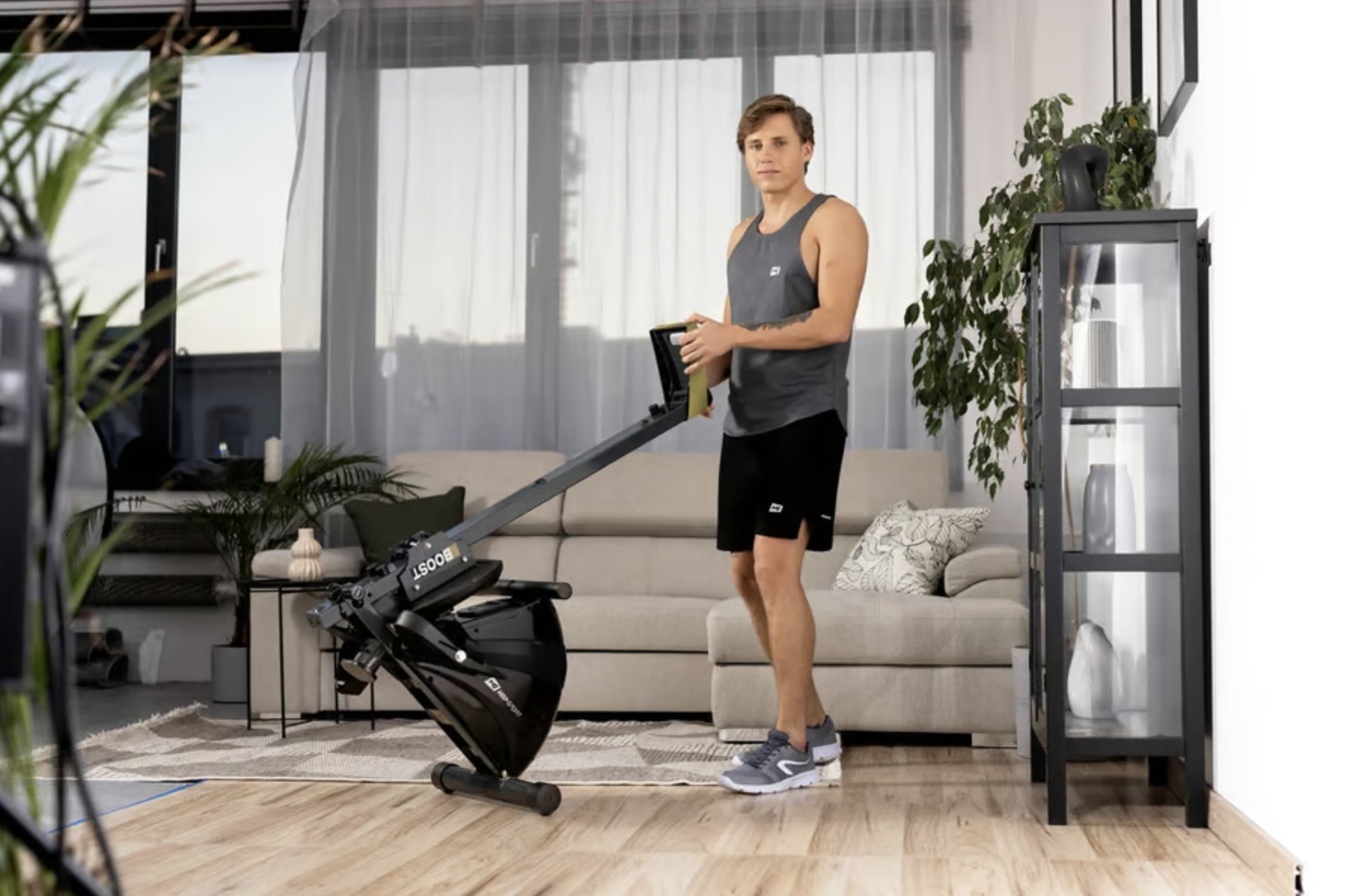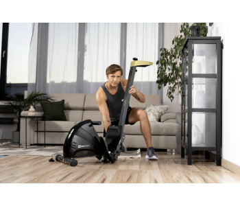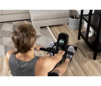 Після тренування не потрібно шукати, куди подіти обладнання. Завдяки транспортним роликам, гребний тренажер легко переміщується без жодних зусиль. А функція швидкого складання дозволяє заощадити простір і зручно зберігати тренажер навіть у невеликій квартирі.