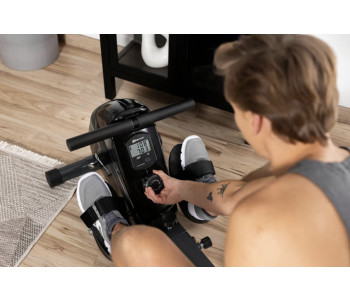 Цей магнітний гребний тренажер оснащено ручним регулятором із 10 рівнями навантаження, який знаходиться прямо під рукою. Ви легко підберете інтенсивність відповідно до своїх цілей - від легкої зарядки до інтенсивного жироспалення.