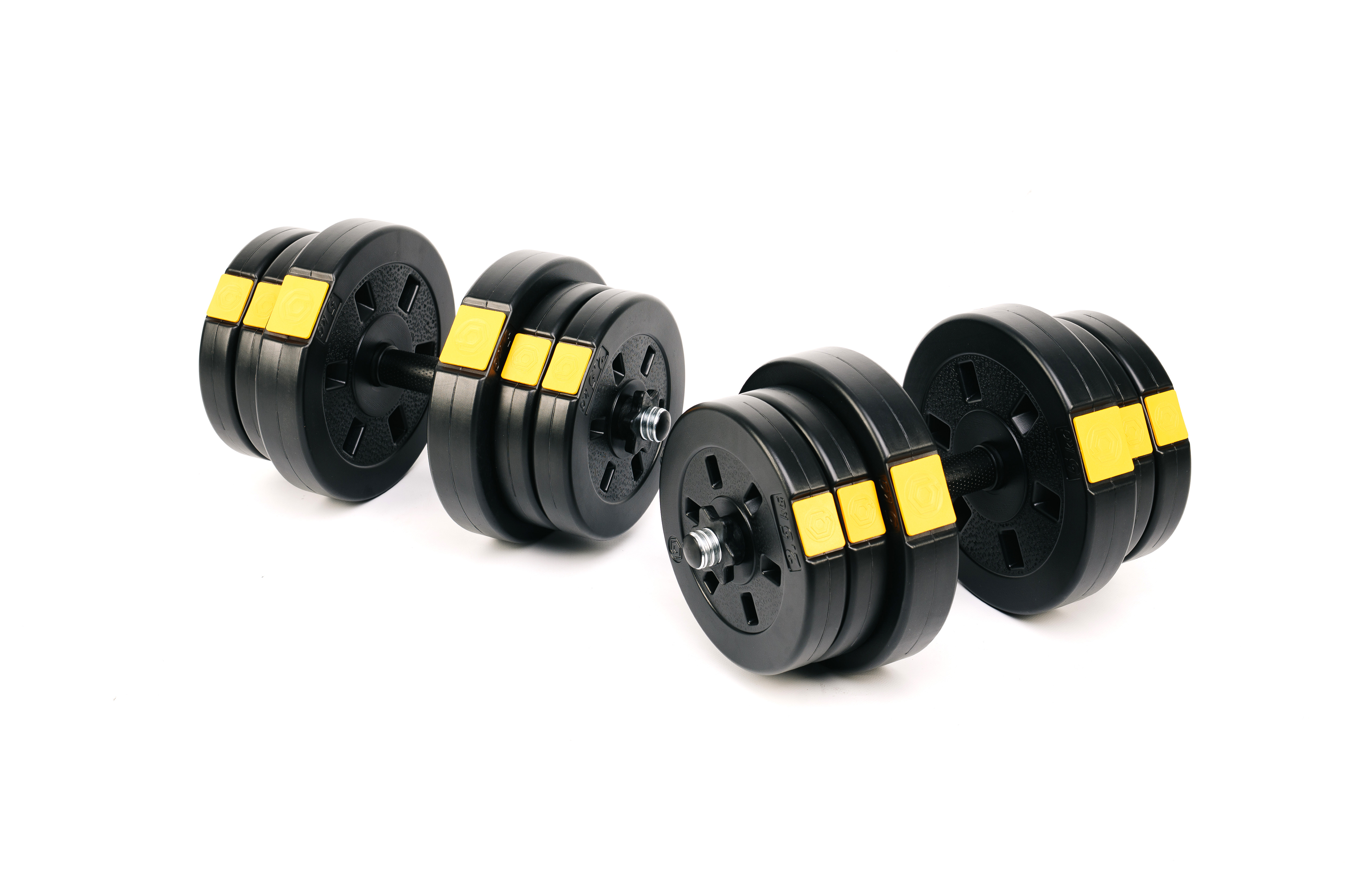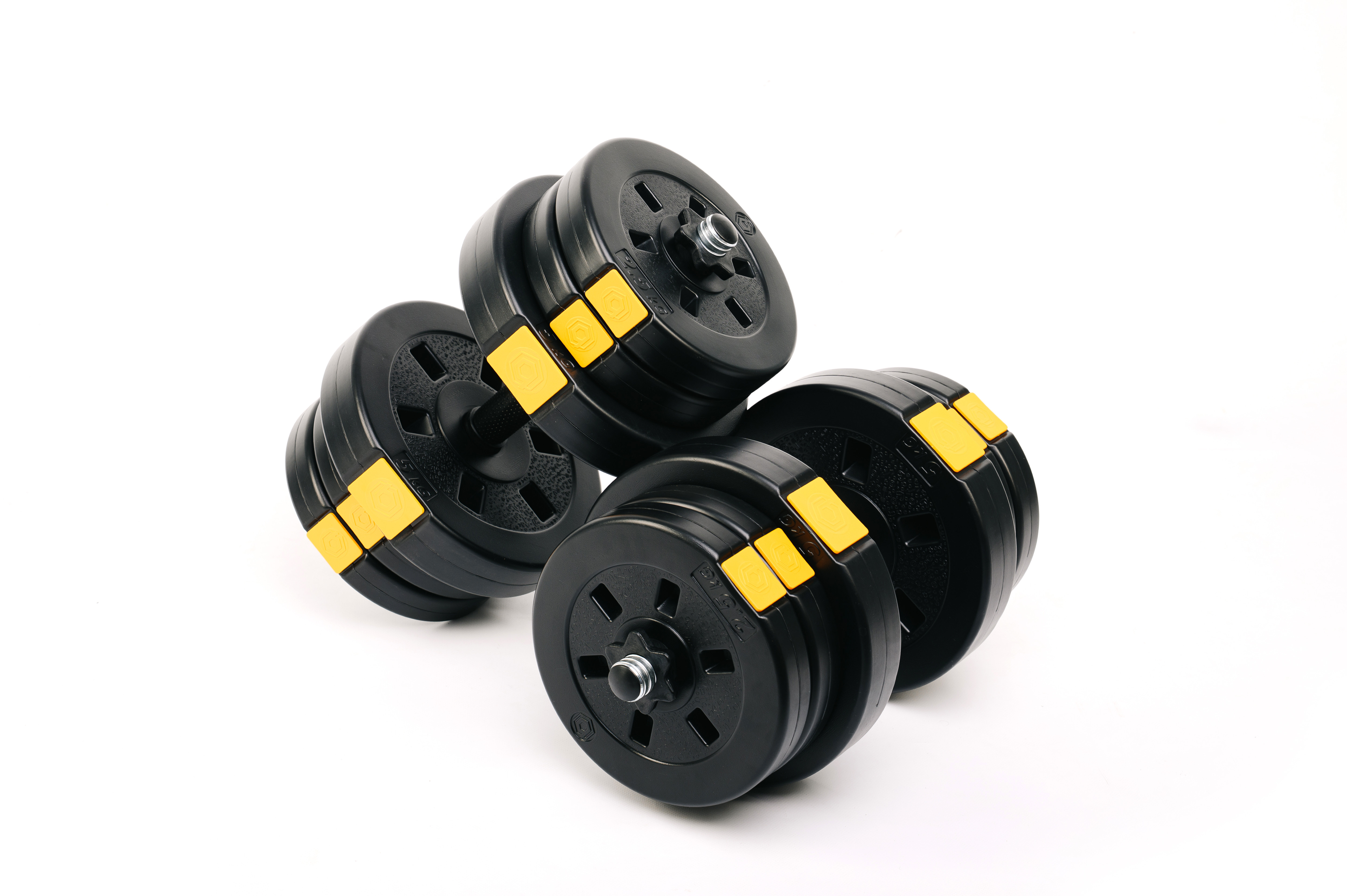 🎯 Гнучке регулювання ваги – набір дисків дозволяє точно підбирати навантаження для будь-яких вправ. 🔇 Безшумні тренування – композитні диски з ABS-покриттям не гримлять і не пошкоджують підлогове покриття. 💪 Надійний хват – рифлені рукоятки грифів забезпечують комфортне та безпечне тренування. 🏋️ Універсальність – підходить для широкого спектра вправ на всі групи м'язів. ✨ Стильний дизайн – фірмове гравіювання робить гантелі візуально привабливими. ⏱️ Ефективність – швидка зміна дисків дозволяє скоротити паузи і зробити тренування більш продуктивним.