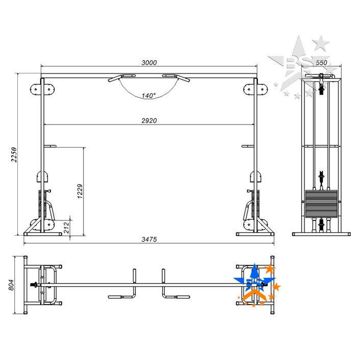 Тренажер для кінезітерапії МТБ-2, стеки 2×80 кг, рама 60×60 мм (рухомі блоки)