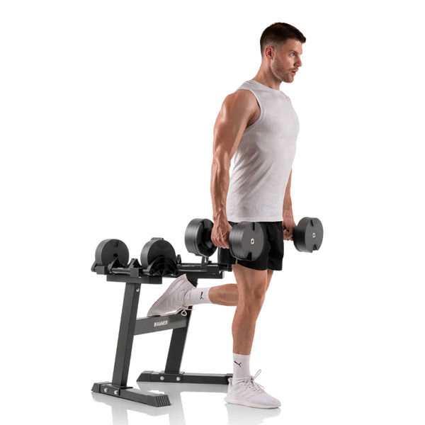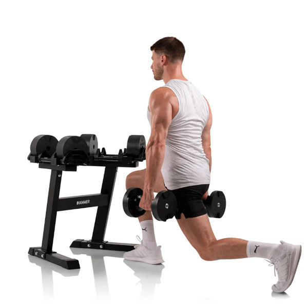 ⭐ Економія простору – замінюють 10 пар класичних гантелей. 🏋️ Широкий діапазон ваги – від 2 до 20 кг з кроком у 2 кг. ⏱️ Швидка зміна ваги – механізм SmartLock дозволяє миттєво налаштувати потрібну вагу. 🎁 Повний комплект – поставляються зі стендом для зручного зберігання та використання. 🇩🇪 Німецька якість – бренд Hammer гарантує надійність та довговічність. 💯 Універсальність – підходять для величезної кількості вправ для всіх груп м'язів.