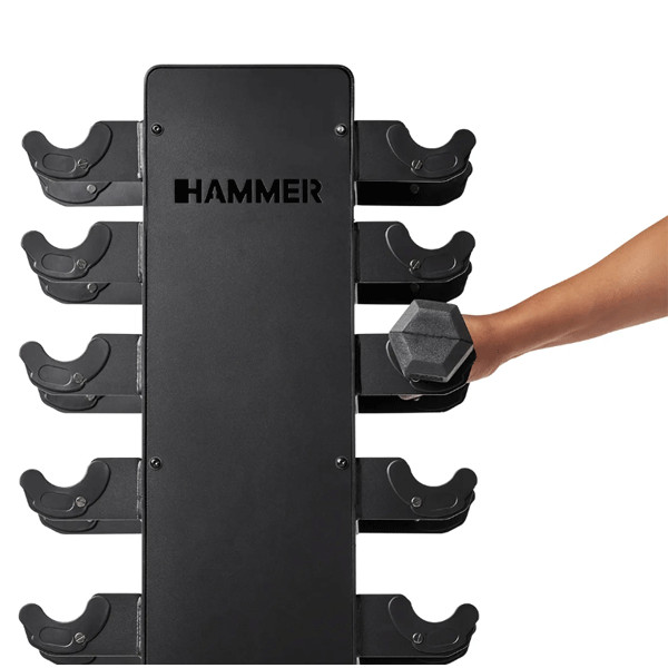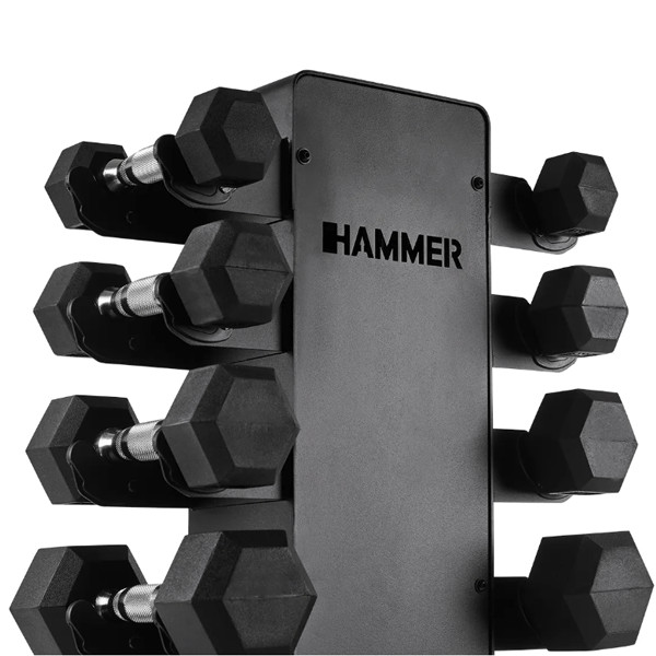 🎁 Повний комплект – набір включає стійку і 10 пар гантелей (від 1 до 10 кг). 📦 Економія простору – вертикальний дизайн стійки дозволяє зберігати гантелі максимально компактно. 🛡️ Безпека – гексагональна форма гантелей запобігає їхньому скочуванню. 🇩🇪 Німецька якість – гарантія надійності та довговічності від Hammer. 🤸 Універсальність – ідеально підходить для початківців та просунутих користувачів. 👌 Зручність – гантелі завжди на своїх місцях, легко взяти та покласти назад.
