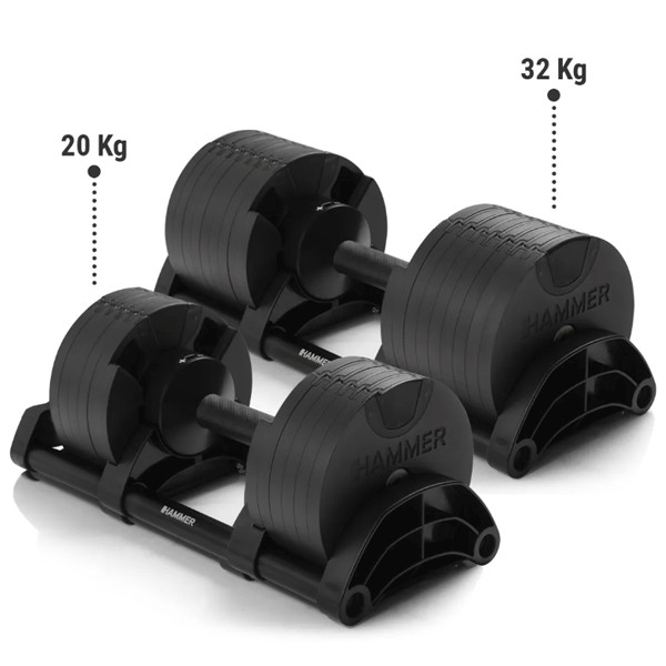 ⭐ Економія простору – замінює 10 класичних гантелей, звільняючи місце. 🏋️ Широкий діапазон ваги – від 2 до 20 кг з кроком у 2 кг. ⏱️ Швидка зміна ваги – механізм SmartLock дозволяє миттєво налаштувати потрібну вагу. 🇩🇪 Німецька якість – бренд Hammer гарантує надійність та довговічність. 💯 Універсальність – підходить для величезної кількості односторонніх вправ.