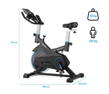 Gymtek XS1000 — це спінбайк з механічним типом опору. Максимальна вага користувача становить 130 кг, а вага самого тренажера — 29 кг. Система махового колеса важить 15 кг, що забезпечує плавне та безшумне тренування. Навантаження регулюється вручну. Габарити тренажера: 106 см у довжину, 52,5 см у ширину та 124 см у висоту. Завдяки ременному приводу тренажер працює дуже тихо. На LCD-дисплеї відображаються ключові показники, включаючи пульс, час, дистанцію, швидкість та калорії. Сидіння регулюється по вертикалі (5 рівнів) та горизонталі, а кермо — по висоті. Тренажер оснащений сенсорами пульсу на ручках та має гарантію 24 місяці.
