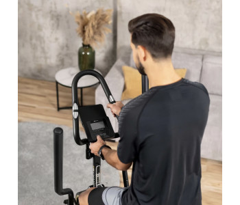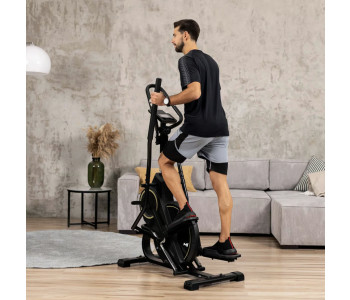 🤸♂️ Тренування 2 в 1 — поєднує функції степпера та еліптичного тренажера для подвійної ефективності. 🧠 Інтелектуальний контроль — інтуїтивний комп'ютер відображає ключові показники та має підставку для планшета. 🛡️ Зручність і безпека — подвійна рейка, антиковзке покриття платформ та система стабілізації забезпечують комфорт і стійкість. 🔕 Безшумна робота — магнітна система навантаження з маховиком вагою 8 кг забезпечує тихе тренування. ⚙️ 8 рівнів опору — дозволяють легко адаптувати інтенсивність тренувань під ваші цілі та рівень підготовки. 🧳 Компактність та мобільність — завдяки невеликим габаритам і транспортувальним роликам тренажер ідеально підходить для будь-яких приміщень. 📊 Мультимедійні можливості — підключення через Bluetooth та сумісність з додатками Kinomap та FitShow урізноманітнюють ваші тренування.