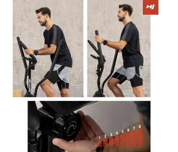 Орбітрек HS-450B Dynamic від бренду Hop-Sport — це тренажер, що поєднує у собі можливості степпера та еліптичного тренажера. Він відкриває перед вами новий рівень кардіо та силових тренувань вдома. Завдяки магнітній системі, восьмирівневому регулюванню інтенсивності та інноваційній конструкції, цей орбітрек дозволяє ефективно тренувати м'язи ніг, сідниць, спини та верхньої частини тіла. Компактність і транспортувальні ролики роблять його ідеальним вибором для будь-якого дому.