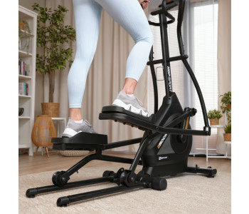 Складана рама дозволяє легко зберігати тренажер після занять - просто поставте його до стіни. А вбудовані транспортувальні ролики дають змогу зручно переміщати його навіть однією рукою. Міцна конструкція витримує вагу до 120кг, що робить орбітрек універсальним для будь-якого члена родини. Це справжній помічник для дому, який поєднує функціональність, надійність і мобільність.