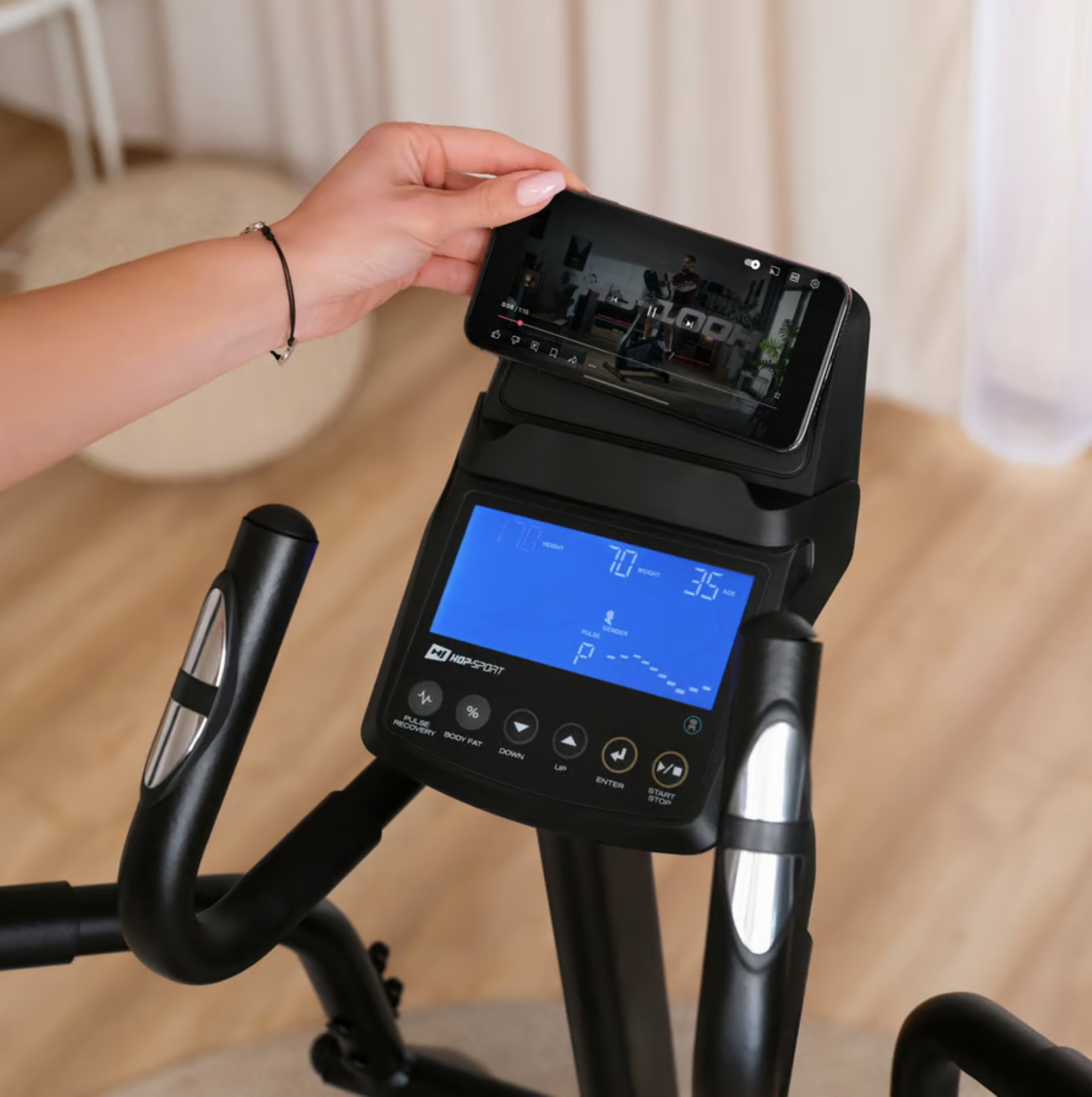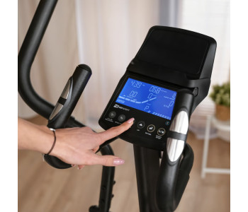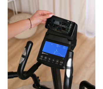 Модель оснащена LED-дисплеєм, що наочно відображає всі основні параметри тренування: час, швидкість, відстань, калорії, пульс і рівень опору. Вбудований Bluetooth відкриває доступ до застосунків Kinomap та FitLog, які урізноманітнять тренування, додадуть ігрову мотивацію або навіть змагання з іншими користувачами. А тримач для телефону або планшета зробить заняття ще зручнішими - переглядайте фітнес-відео, слухайте музику чи тренуйтесь за маршрутом Альп, не виходячи з дому. Орбітрек с Bluetooth - це сучасний підхід до домашнього фітнесу.