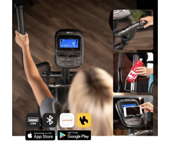 Розумний комп'ютер. Вбудований комп'ютер має 12 програм тренувань, включаючи режими WATT, HRC, BODY FAT. USB-порт із функцією зарядки та підключення через Bluetooth до додатків Kinomap та iConsole+ перетворюють тренування на інтерактивну та захопливу гру.