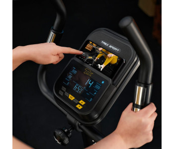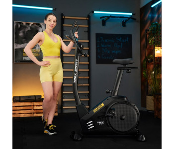 Виробник: TREX SPORT Модель: TX-750EB Saber Вага нетто: 29,3 кг Максимальне навантаження: 135 кг Система навантаження: електромагнітна Вага махового колеса: 10 кг Кількість рівнів навантаження: 32 Кількість програм: 21 Джерело живлення: електромережа Гарантія: 24 місяці