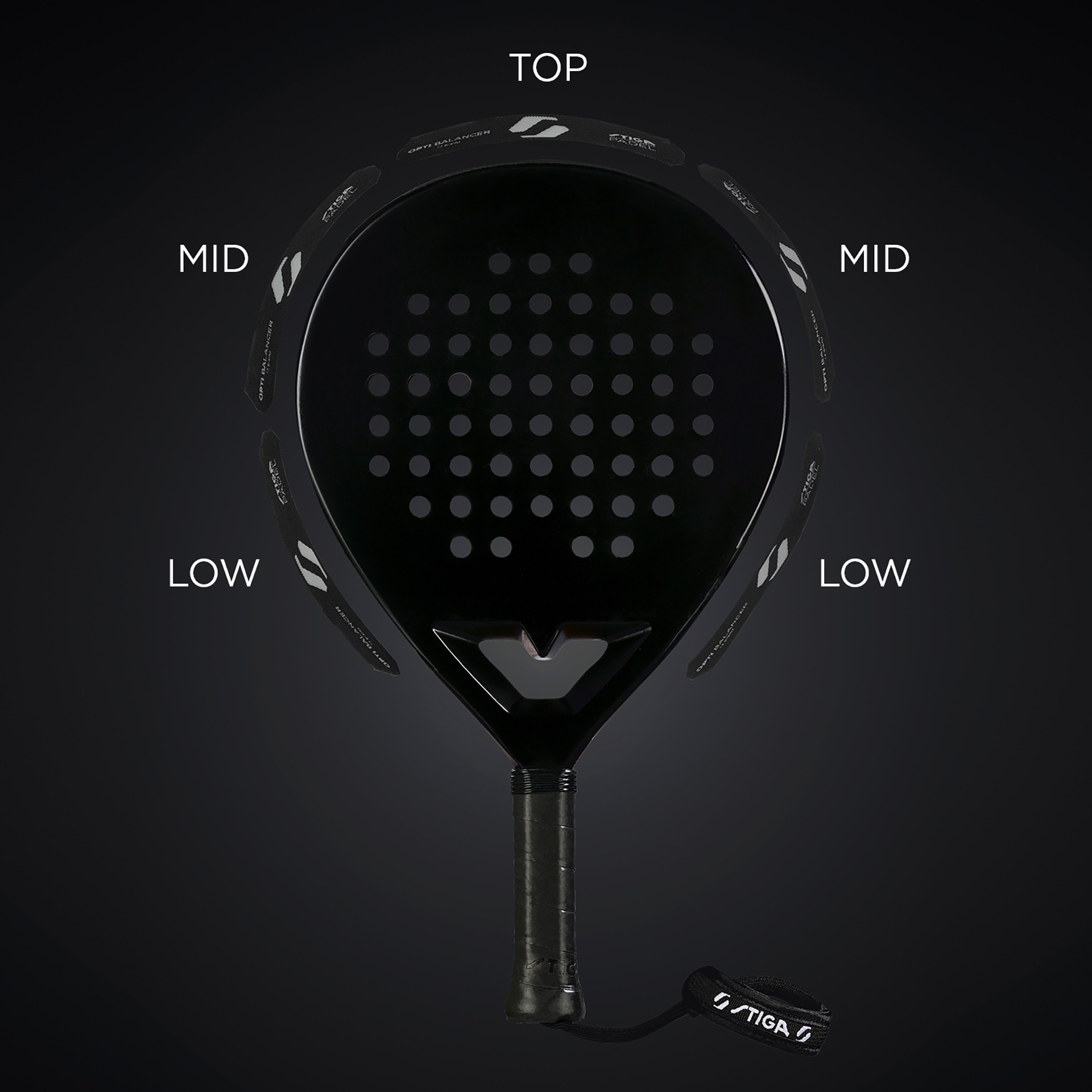 Додавання ваги в стратегічно важливих точках рами ракетки може кардинально змінити її характеристики: розміщення зверху збільшує потужність і швидкість, знизу — підвищує контроль, а в центрі — робить ракетку важчою, зберігаючи баланс. Це ідеальний спосіб адаптувати інвентар до вашого власного розвитку та забезпечити собі перевагу в кожній грі.