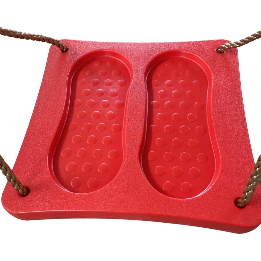 Поверхня качелі з фіксаторами для стопи дозволяє дитині встати на повний зріст і розгойдуватися, не боячись зісковзнути з сидіння. Такі гойдалки сприяють фізичному розвитку дитини, координації його рухів і спритності.