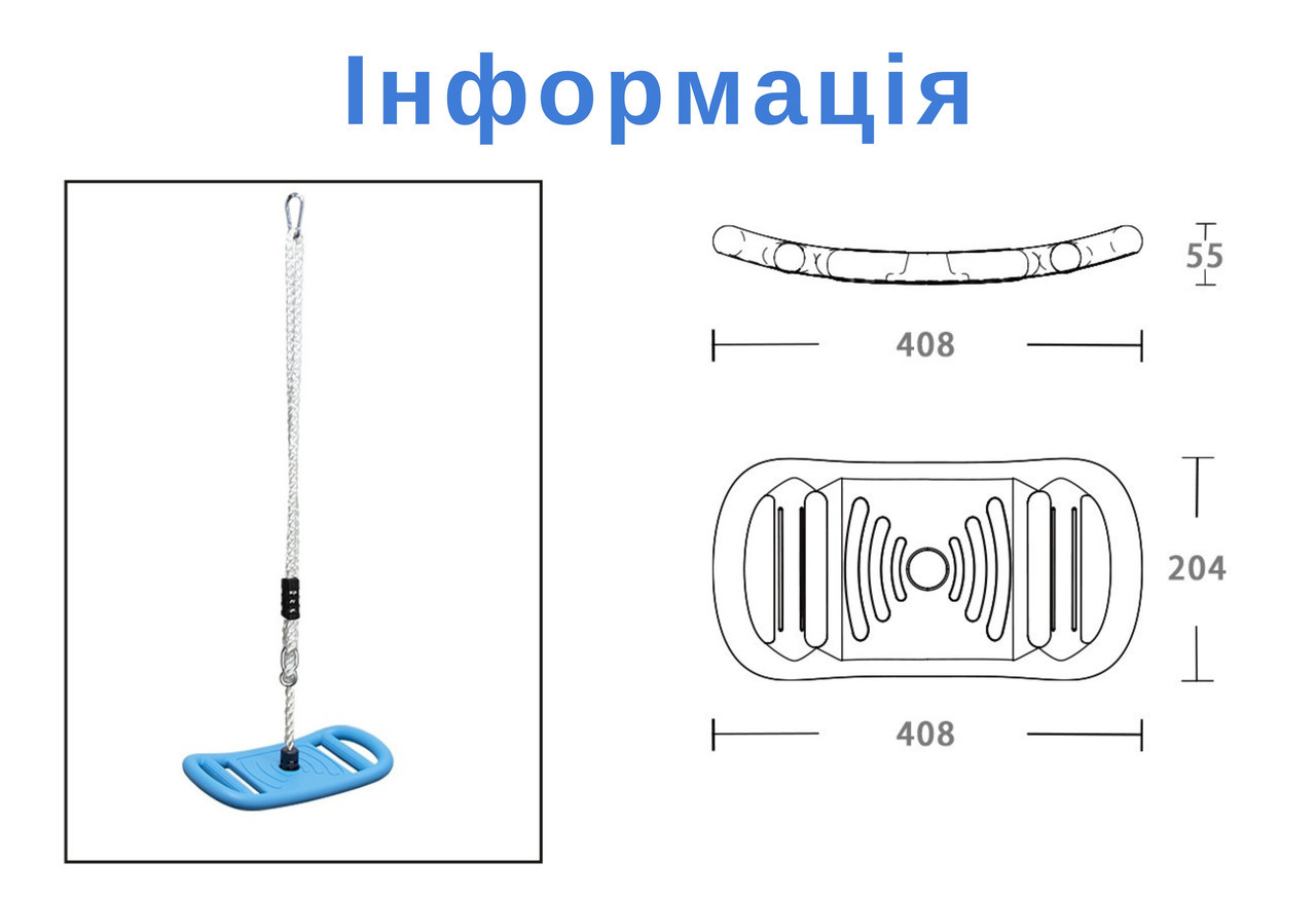 - Розміри гойдалки: 40,8 × 20,4 × 150 см