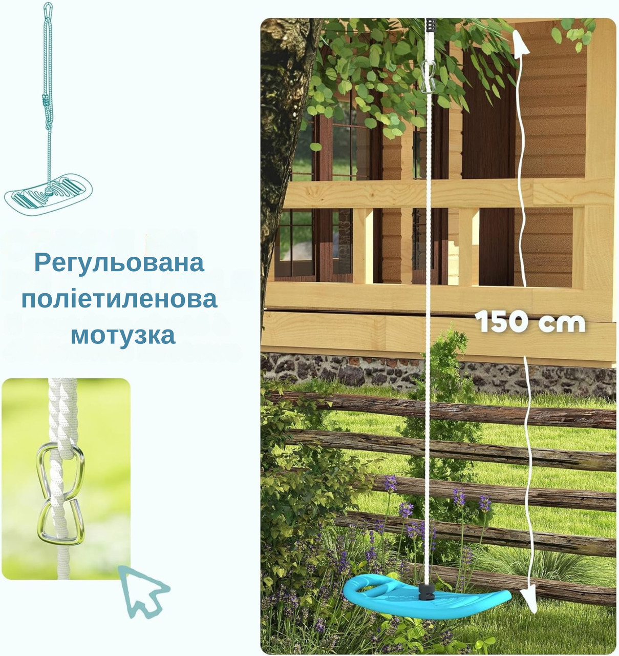 - 📏 Регульована мотузка — довжина до 150 см, висота 35–60 см
