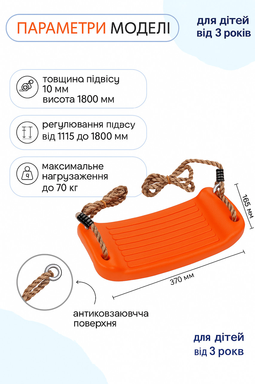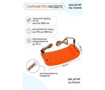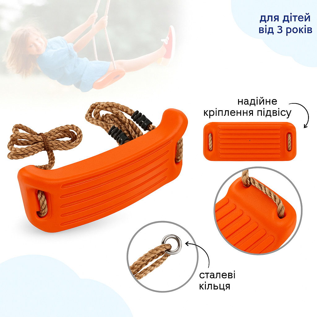 Металеві кліпси дозволяють легко регулювати висоту гойдалки під зріст дитини.