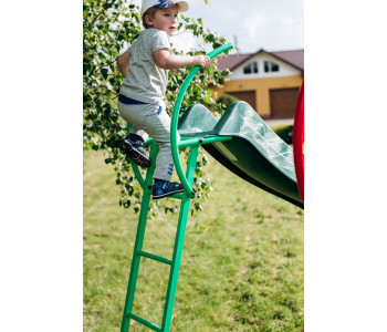 Метал фарбований методом порошкового покриття. Порошкове фарбування відрізняється від емалювання збільшеним терміном служби та стійкістю до механічного впливу. Завдяки порошковому покриттю, Дитяча гірка 2,2 м з металевими сходами не покриється корозією і не втратить охайного вигляду навіть через багато років щоденного використання.