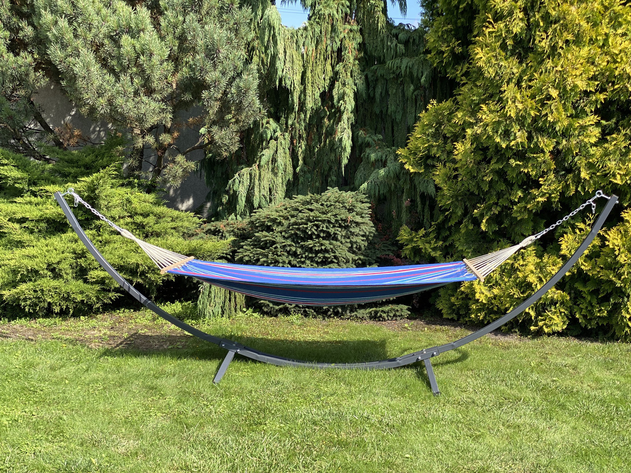 Ми є виробником цих гамаків і рам для них. З цього тільки у нас Ви зможете підібрати металеву раму під гамак, яка доступна в 6 кольорах! Для каркаса використовується добірний профіль товщиною 2 мм, який гарантує безпечне використання.