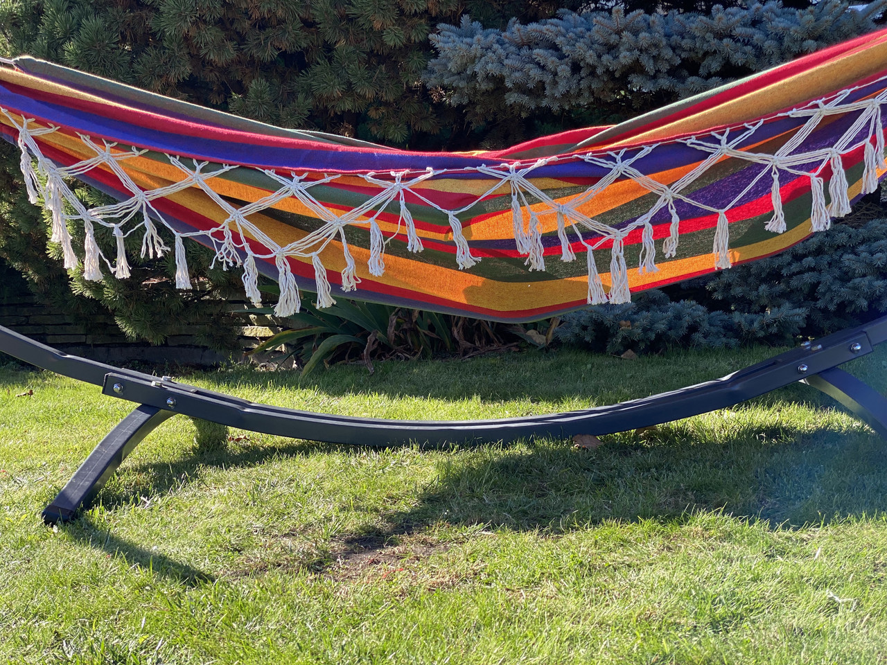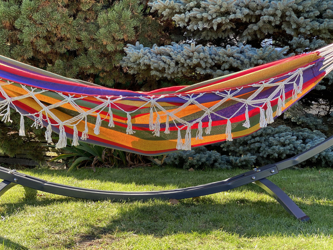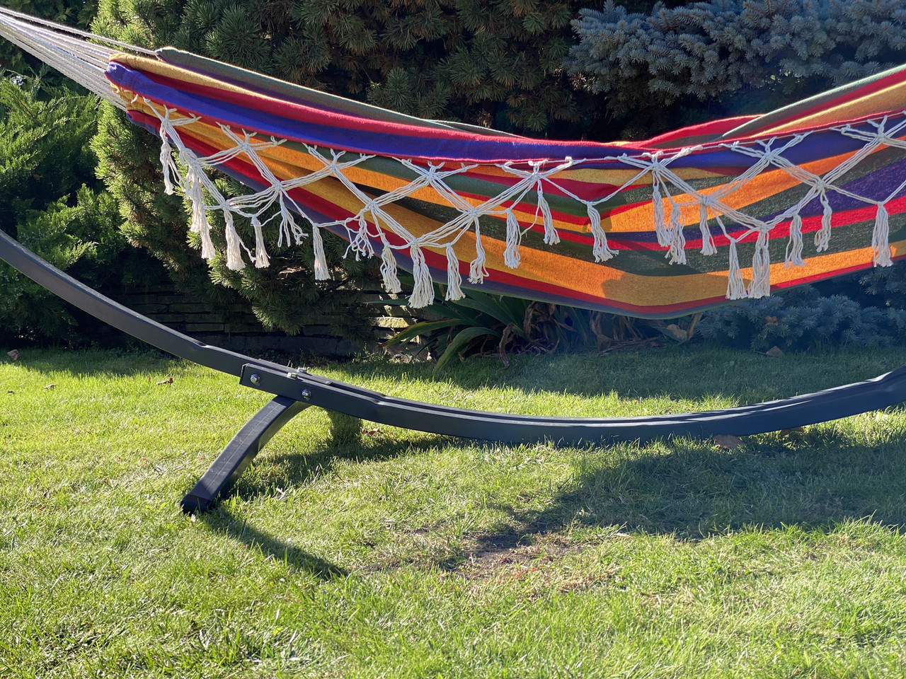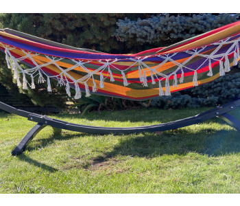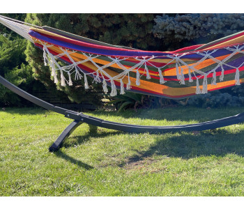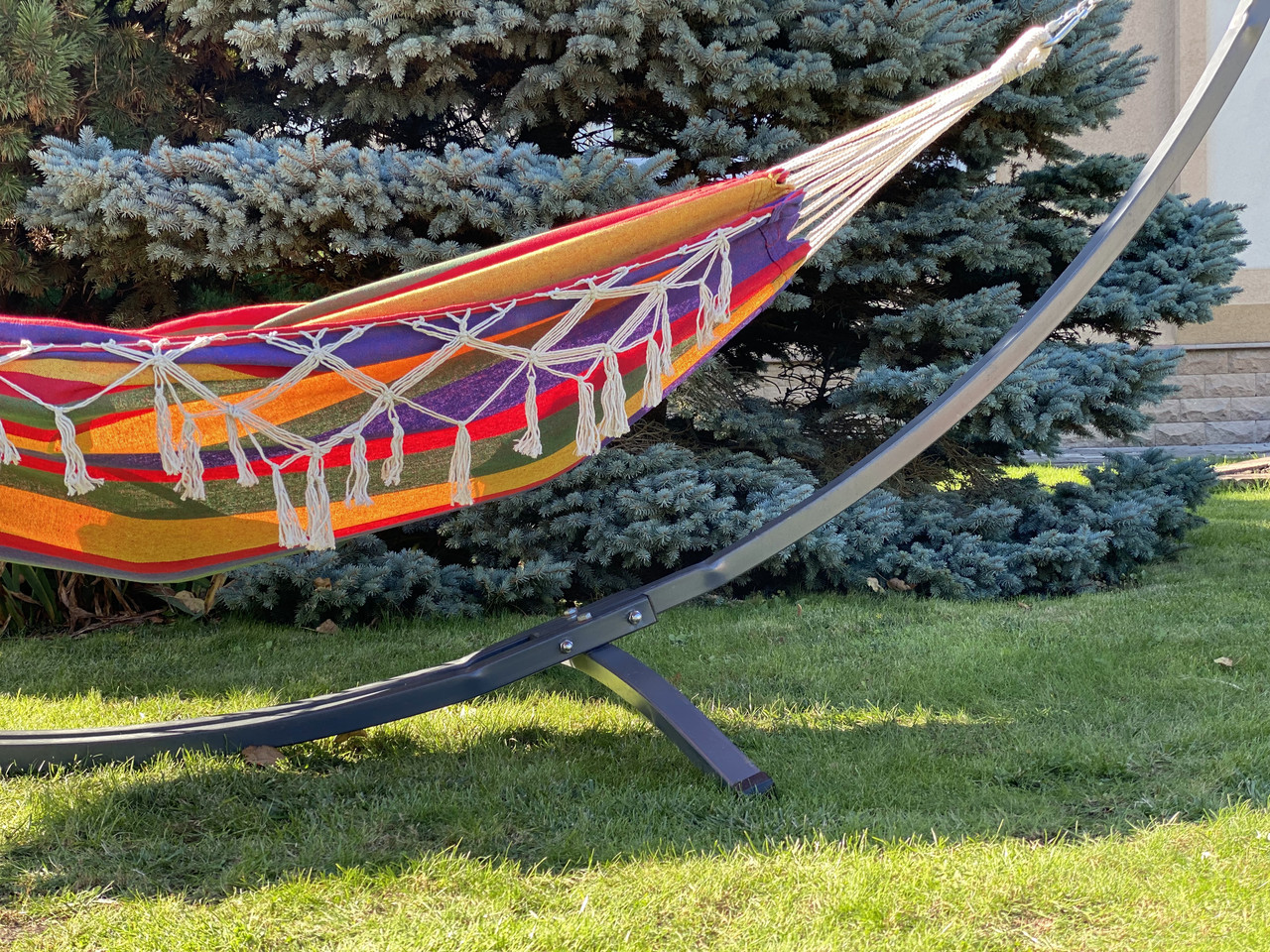 Ми є виробником цих гамаків і рам для них. З цього тільки у нас Ви зможете підібрати металеву раму під гамак, яка доступна в 6 кольорах! Для каркаса використовується добірний профіль товщиною 2 мм, який гарантує безпечне використання.