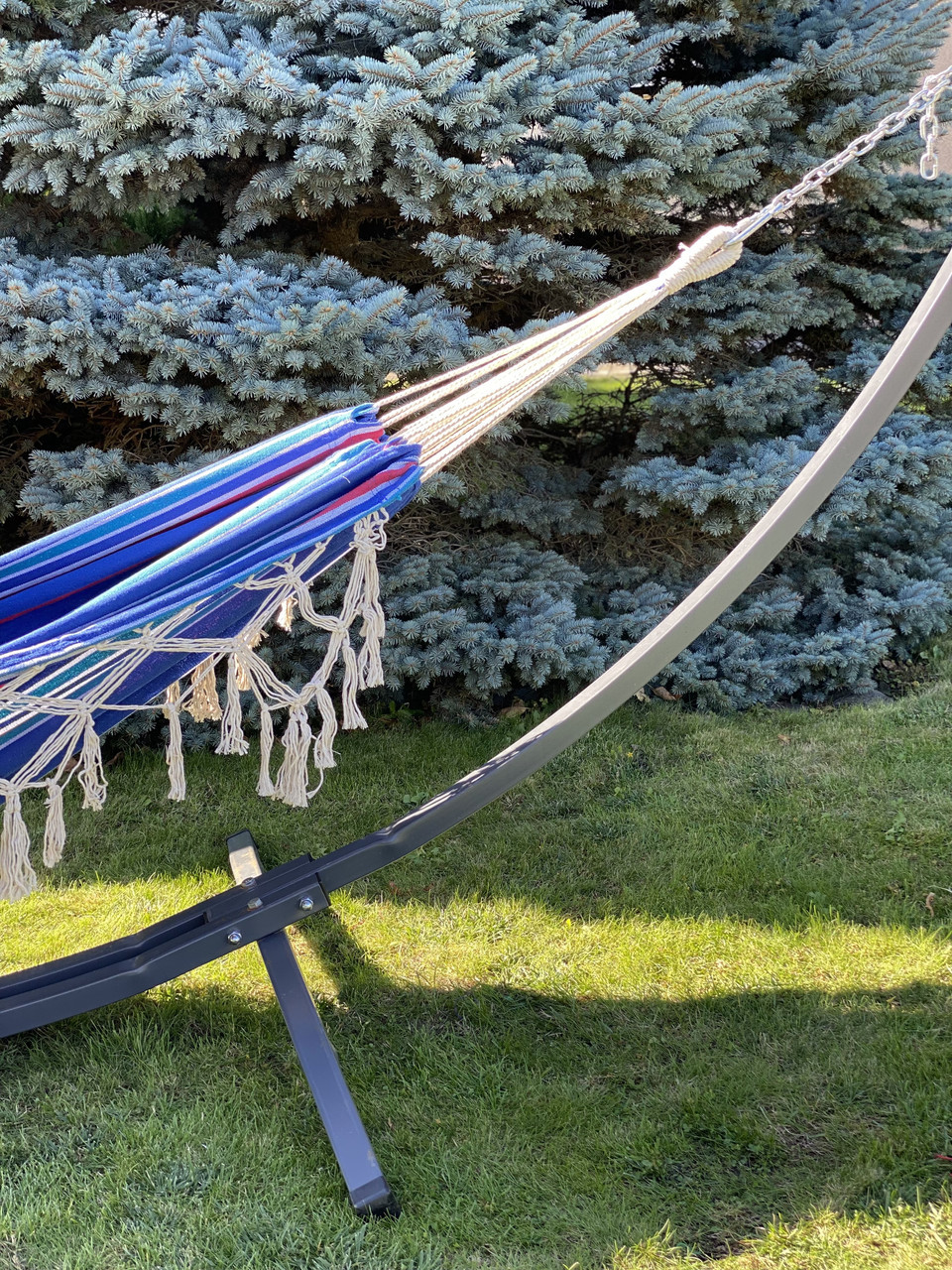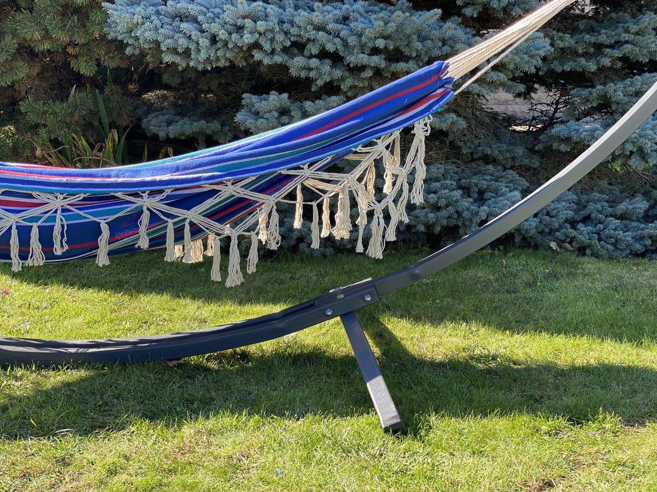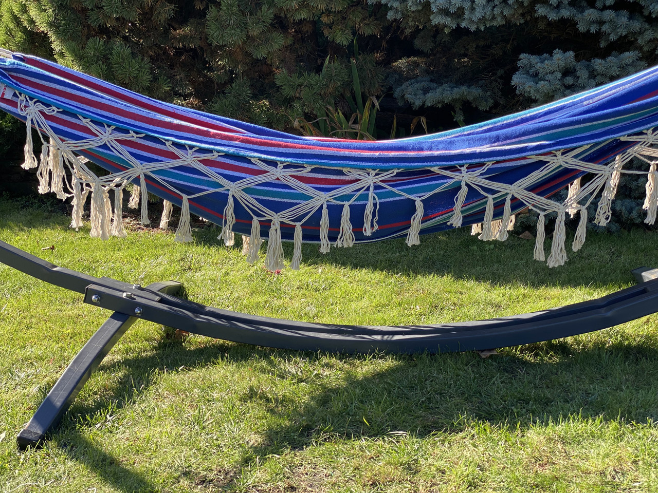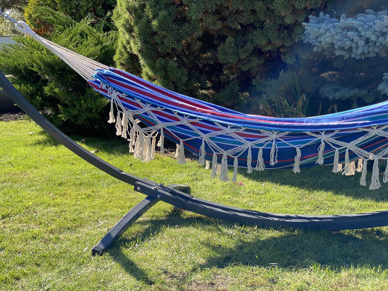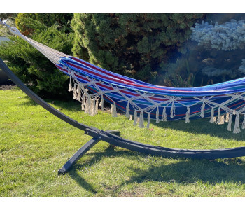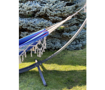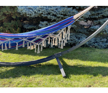 Ми є виробником цих гамаків і рам для них. З цього тільки у нас Ви зможете підібрати металеву раму під гамак, яка доступна в 6 кольорах! Для каркаса використовується добірний профіль товщиною 2 мм, який гарантує безпечне використання.