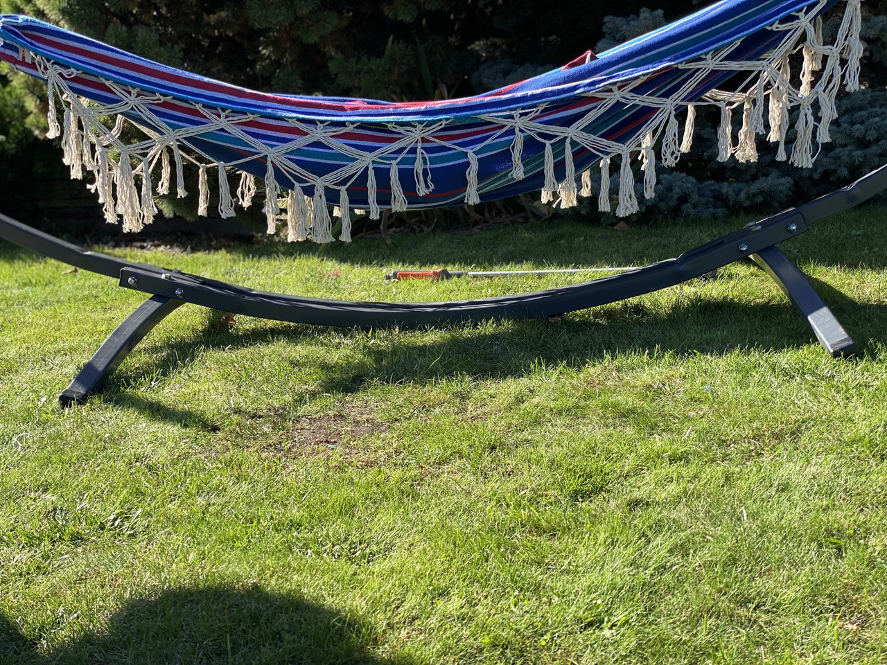Каркас стійки підходить для всіх типів гамаків: одномісного, двомісного, сімейного. У комплекті зі стійкою надається весь необхідний комплект кріплень для збірки стійки і установки гамака.