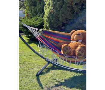 Ми є виробником цих гамаків і рам для них. З цього тільки у нас Ви зможете підібрати металеву раму під гамак, яка доступна в 6 кольорах! Для каркаса використовується добірний профіль товщиною 2 мм, який гарантує безпечне використання.