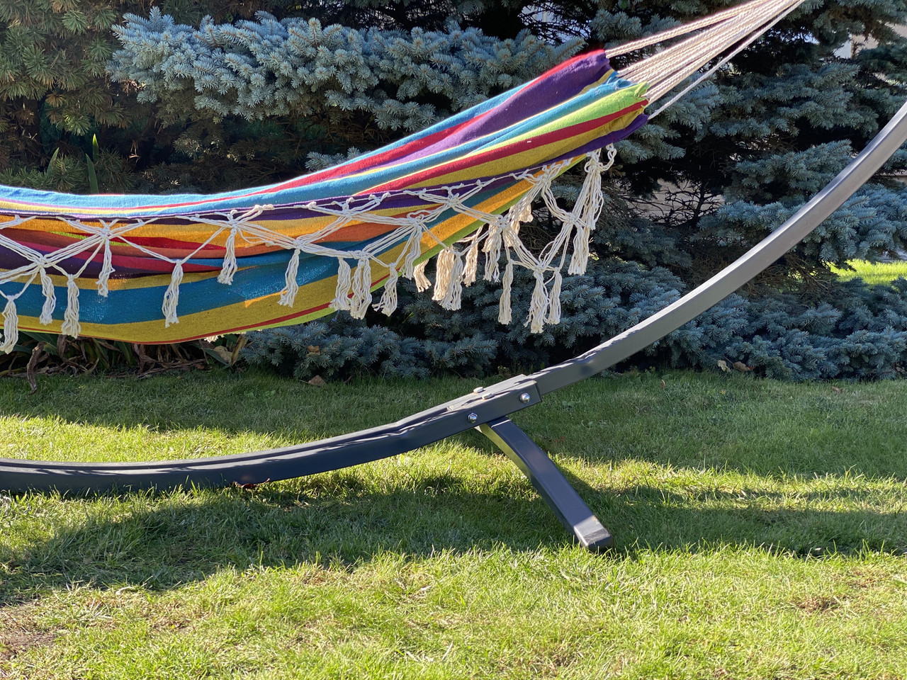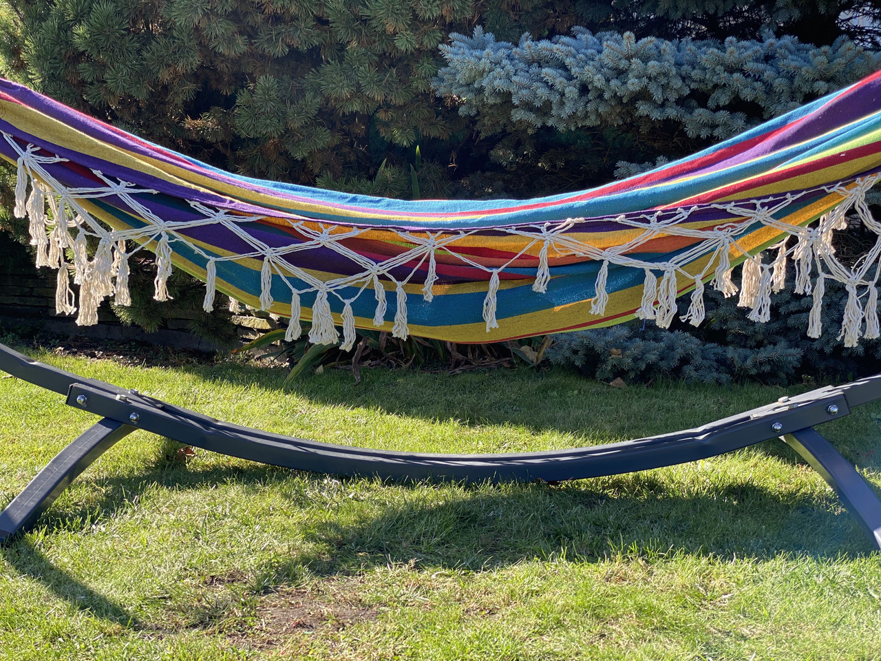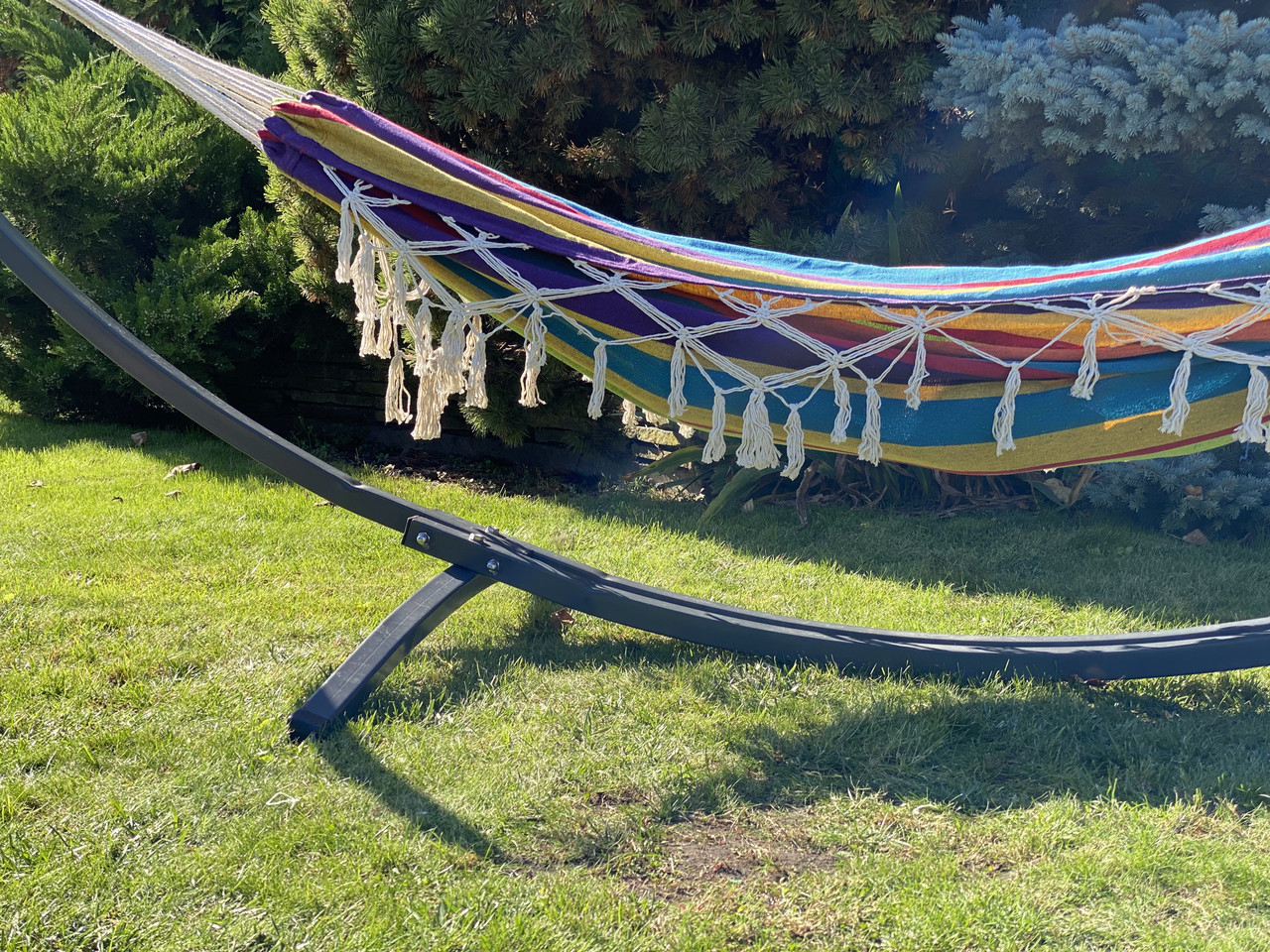 Ми є виробником цих гамаків і рам для них. З цього тільки у нас Ви зможете підібрати металеву раму під гамак, яка доступна в 6 кольорах! Для каркаса використовується добірний профіль товщиною 2 мм, який гарантує безпечне використання.