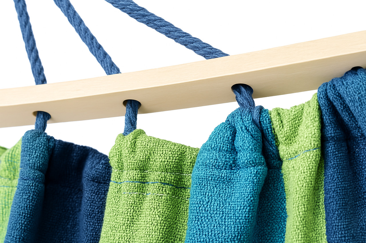 Матеріал, що ідеально підходить для підвісних гамаків, відповідає всім вимогам, які вимагаються до якісних гамаків. Будучи м'яким і приємним на дотик, бавовна подарує вам приємні тактильні відчуття протягом тривалих годин відпочинку. Ви сміливо можете брати з собою своїх дітей, так як гіпоалергенна тканина не викликає подразнень або почервоніння навіть на чутливій дитячій шкірі. До того ж, для фарбування моделі використовувалися стійкі натуральні барвники, які з часом не линяють при пранні і не витираються, зберігають яскравість і новизну моделі.