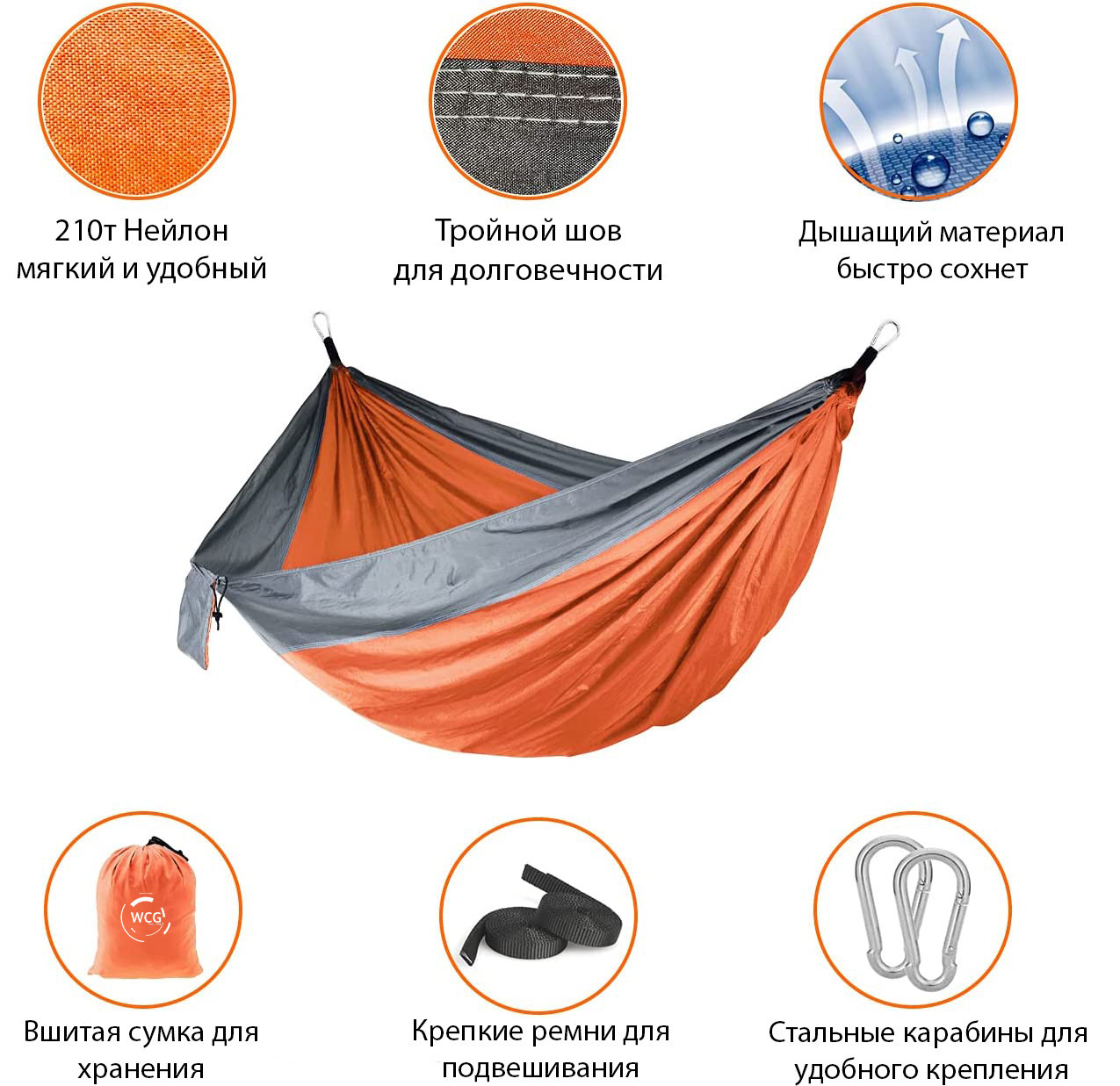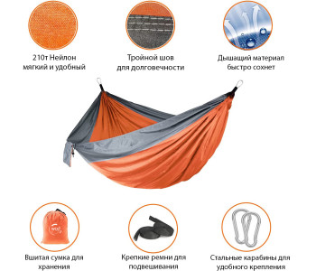 - Нейлоновий гамак TOURING Оранжевий з чорним XL 270 х 140 WCG