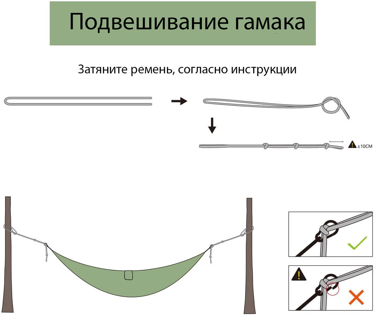 Більшість гамаків які Ви можете зустріти на ринку поставляються без карабінів і замість міцних ременів використовують кріплення на тросу. Це незручно, а також не зовсім безпечно. Ми пропонуємо Вам гамаки з надміцним ременями для безпеки, і з кріпленням на карабінах для простоти в установці! Вам більше не потрібно затягувати вузли переживаючи що гамак впаде.