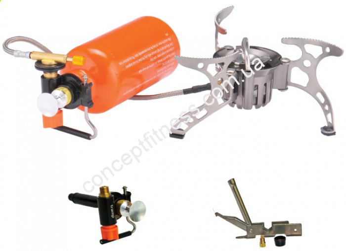 Горілки мультипаливні зі шлангом і підігрівом Tramp TRG-013 оснащена розпилювачами-форсунками. Легко збирається, не вимагає очищення після зміни пального. Виріб виконаний з нержавіючого сталевого матеріалу, вага - 670 грам. Набір крім пальника включає ndash; алюмінієвий насос, що забезпечує довгий період роботи вироби, резервуар, що підходить для ефективного зберігання пального, розпилювачі (2 шт.), чохол із пластику. Робота Tramp TRG-013 із застосуванням гасу /бензину виробляється при невисоких температурних значеннях.