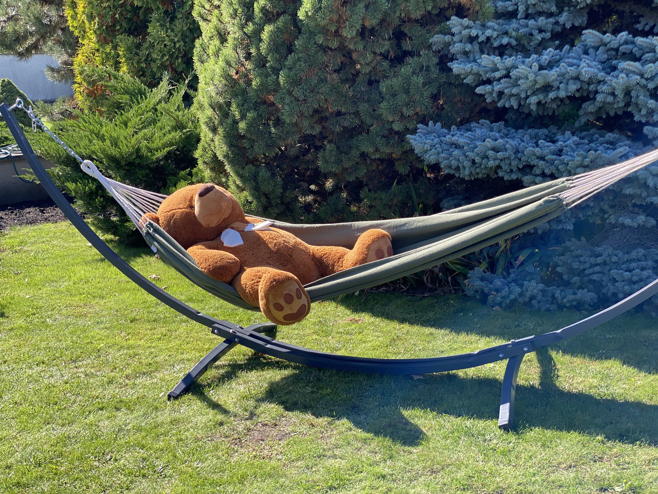 Каркас стійки підходить для всіх типів гамаків: одномісного, двомісного, сімейного. У комплекті зі стійкою надається весь необхідний комплект кріплень для збірки стійки і установки гамака.