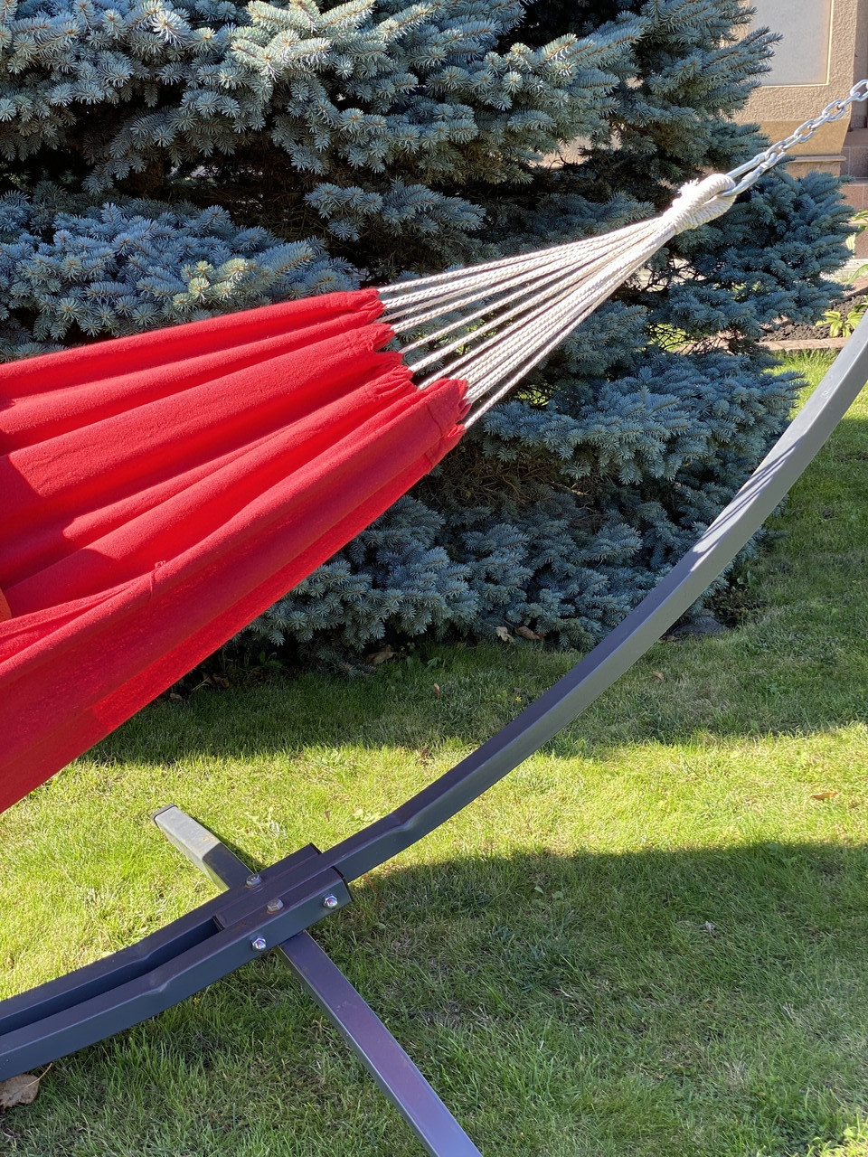 Ми є виробником цих гамаків і рам для них. З цього тільки у нас Ви зможете підібрати металеву раму під гамак, яка доступна в 6 кольорах! Для каркаса використовується добірний профіль товщиною 2 мм, який гарантує безпечне використання.