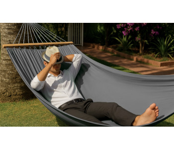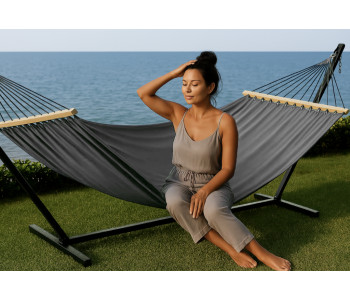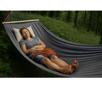 Матеріал, що ідеально підходить для підвісних гамаків, відповідає всім вимогам, які вимагаються до якісних гамаків. Будучи м'яким і приємним на дотик, бавовна подарує вам приємні тактильні відчуття протягом тривалих годин відпочинку. Ви сміливо можете брати з собою своїх дітей, так як гіпоалергенна тканина не викликає подразнень або почервоніння навіть на чутливій дитячій шкірі. До того ж, для фарбування моделі використовувалися стійкі натуральні барвники, які з часом не линяють при пранні і не витираються, зберігають яскравість і новизну моделі.