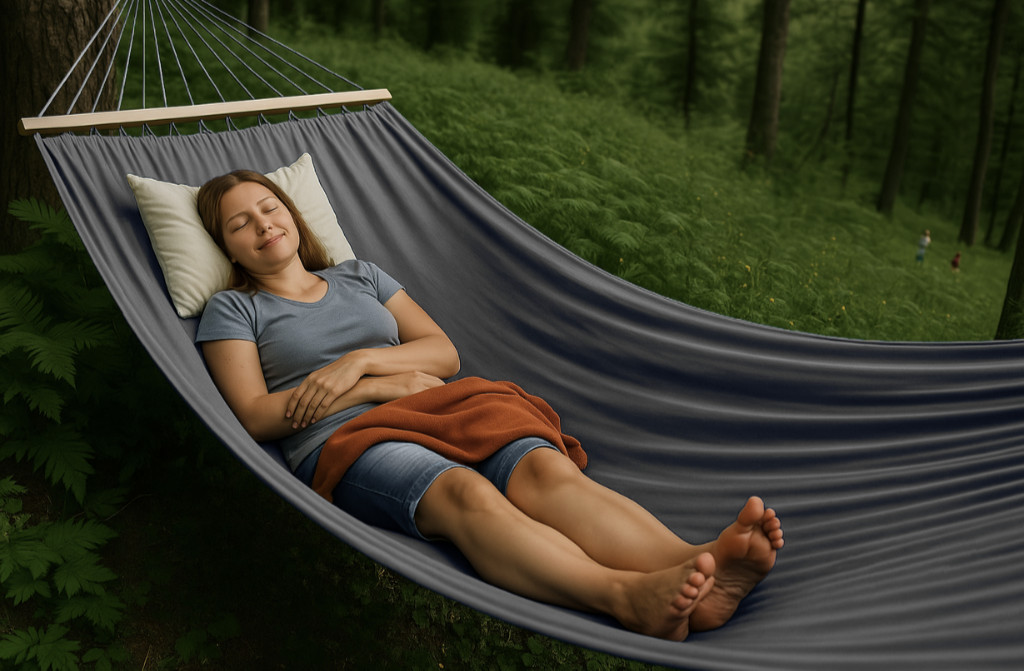 Додатковий комфорт в результаті великої кількості підвісних канатів: за допомогою великої кількості канатів, які з'єднюють сукно гамака з системою для підвішування, оптимально розподіляється вага тіла в гамаку, що забезпечує неповторне відчуття легкості.