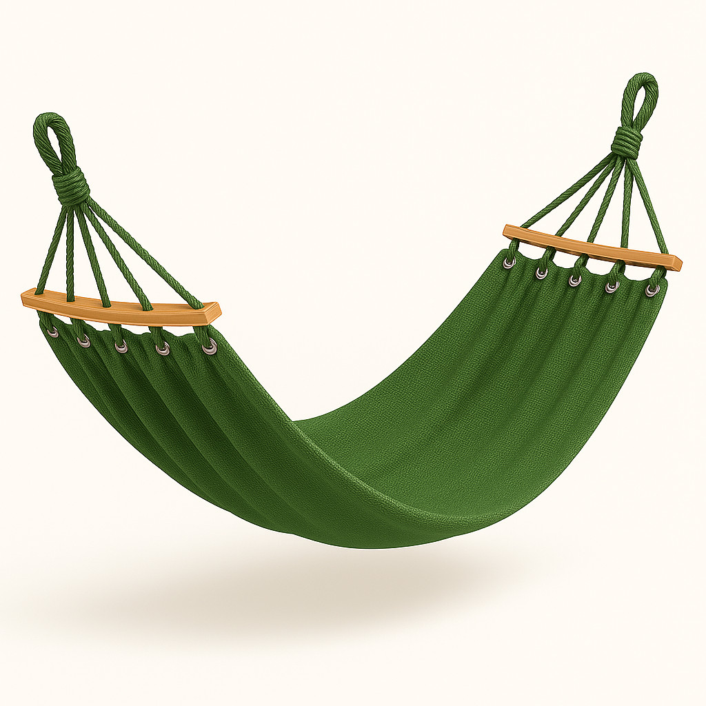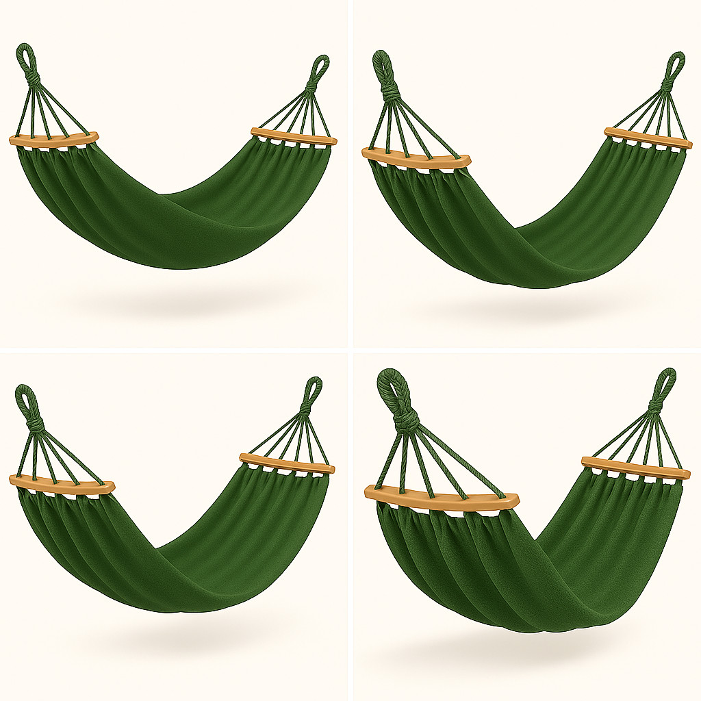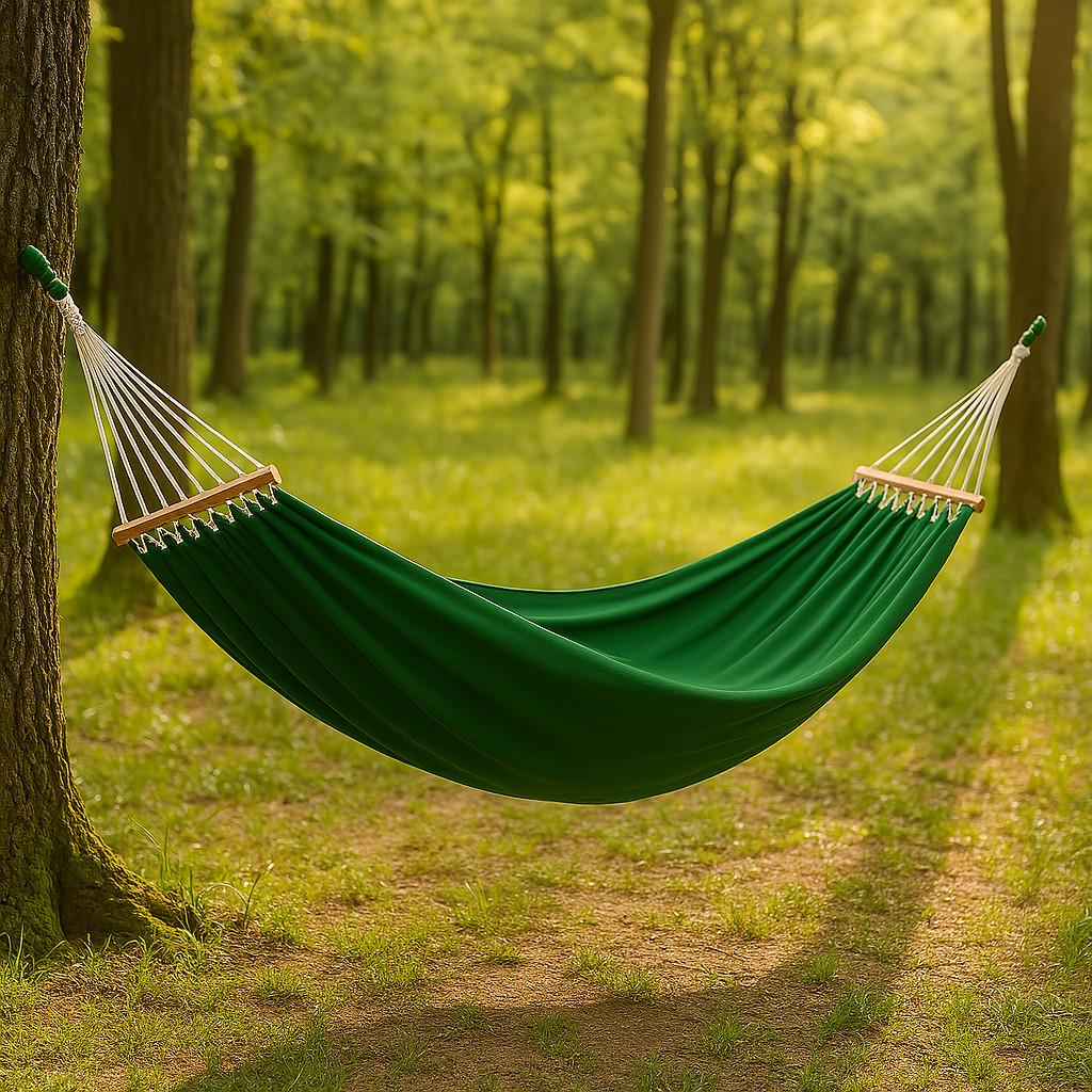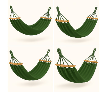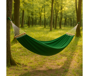 Матеріал, що підходить для підвісних гамаків, відповідає всім вимогам, які вимагаються до якісних гамаків. Будучи м'яким і приємним на дотик, бавовна подарує вам приємні тактильні відчуття протягом тривалих годин відпочинку. Ви сміливо можете брати з собою своїх дітей, так як гіпоалергенна тканина не викликає подразнень або почервоніння навіть на чутливій дитячій шкірі. До того ж, для фарбування моделі використовувалися стійкі натуральні барвники, які з часом не линяють при пранні і не витираються, зберігають яскравість і новизну моделі.
