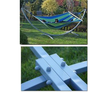 Каркас стійки підходить для всіх типів гамаків: одномісного, двомісного, сімейного. У комплекті зі стійкою надається весь необхідний комплект кріплень для складання стійки та встановлення гамака.